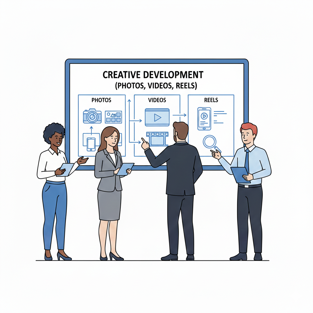 Yes. We handle complete creative production including images, videos, reels, and ad copy.